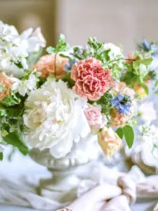 Define in a few lines the atmosphere and colors you want for your wedding. This is to ensure a common thread and coherence between all the elements that make up your decor. An experienced floral designer will ask you to send him visuals of all the elements on the table, to match the floral atmosphere, the containers… to your wedding decoration. At La Maison Dautel, we also offer an event designer service for our future brides and grooms. They can therefore rely on our expertise, entrusting us with the entire decoration of their wedding. We select the right service providers for the right atmosphere: graphic designer, calligrapher, furniture rental, guest gifts…