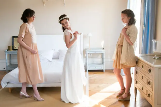 “At 2.50pm, when Marie, our photographer, has just said that she thought we were a relaxed bride and groom, she and Florent (video) ask where Quentin is, as it was agreed that he would go upstairs to get ready at 3pm. Clara looks out the window and sees him playing in the pool with his nieces and nephews. We were indeed incredibly relaxed because we were happy to be there, surrounded by our loved ones and filled with love and kindness. By 3 p.m. he was well up and getting ready!”