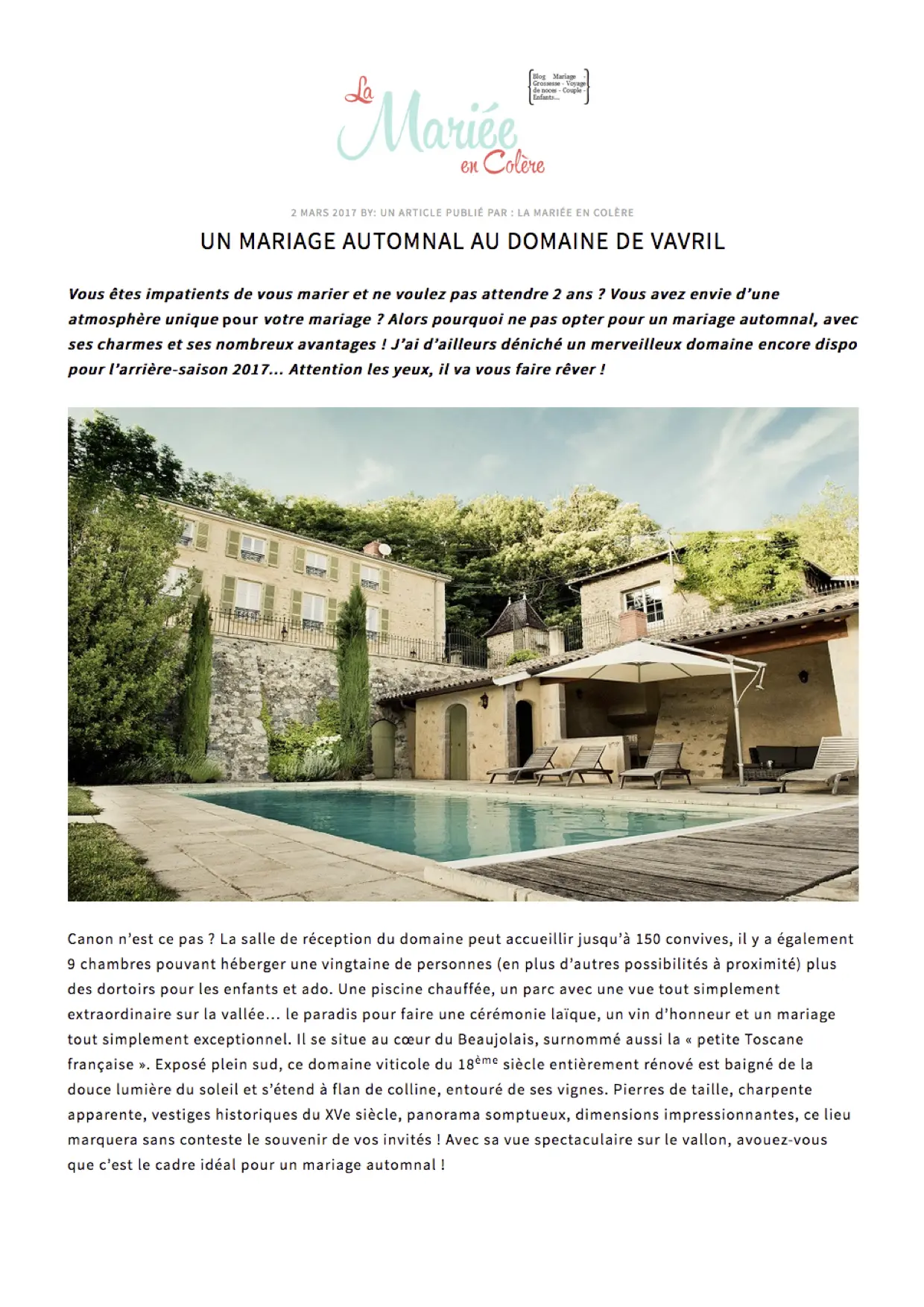 You’re eager to get married and don’t want to wait 2 years? You want a unique atmosphere for your wedding? So why not opt for an autumn wedding, with its charms and numerous advantages! I’ve even found a wonderful estate still available for late season 2017… Watch out, it’s going to make you dream!