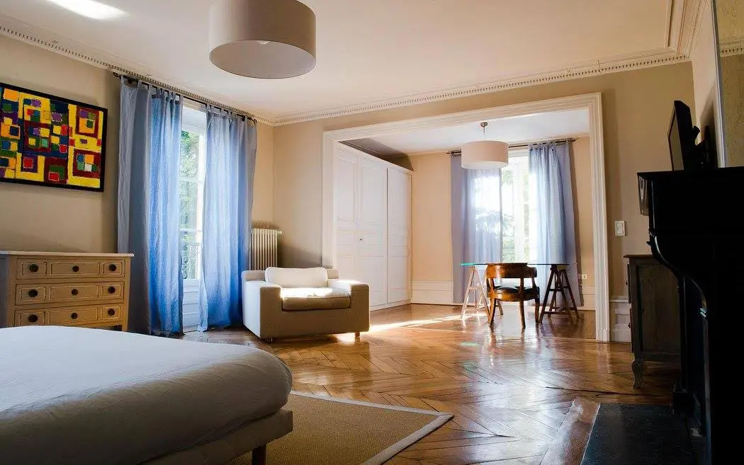 Cette maison du XVIIIe allie raffinement, charme et confort. Caractéristique de cette période, on retrouve un escalier central majestueux qui permet d’accéder aux chambres des maîtres et aux combles, réservées à l’époque au personnel de maison. Parquet, cheminées et doubles portes dans les chambres des maîtres, tomettes et poutres apparentes au deuxième étage ont été conservées lors de la rénovation des lieux. Une superbe suite est dédiée aux mariés, avec salle de bain privative et espace make-up et coiffure.