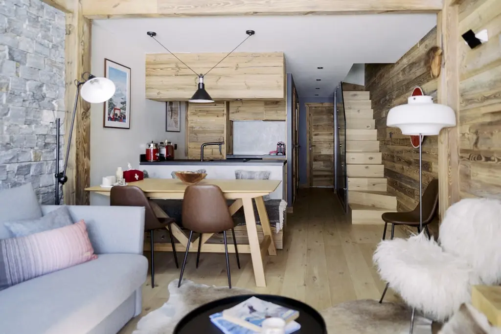 Idéal pour 6 à 7 personnes, entièrement refait dans un esprit chalet, l’appartement « Vavril Ski aux Pieds » offre une prestation haut de gamme sans être ostentatoire. Parking privé et couvert, appartement en duplex avec un séjour cathédral, un espace parental proche des pièces à vivre au rez-de-chaussée, et isolé de l’espace enfant se trouvant à l’étage.